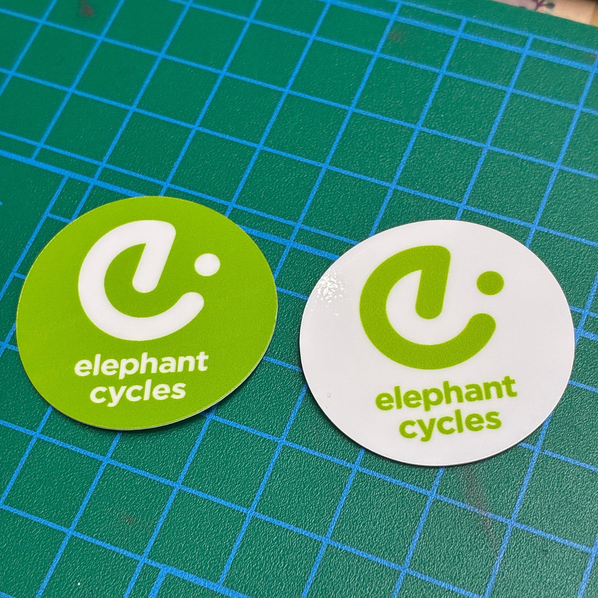 エレファントサイクル 丸型ロゴステッカー(約3cm)|自転車ショップステッカー/ホワイト・グリーン 2色セット