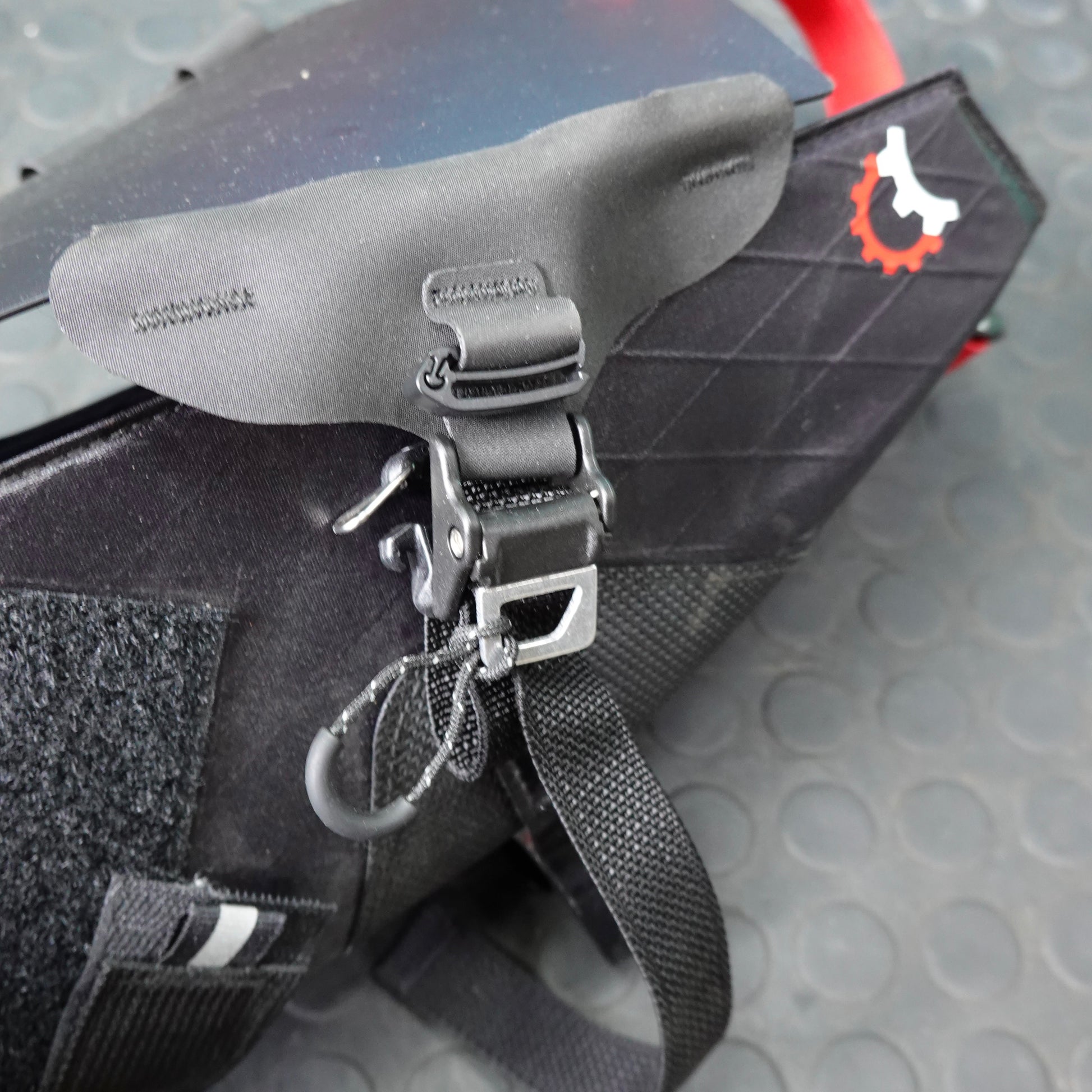 ハーネス部をバイクに残して、防水バッグだけサッと取り出せる便利なサドルバッグです。防水袋にはエアバルブがありコンプレッションが容易にできます。レギュラーサイズに比べてかなりコンパクトに出来ているので、フレームが小さく、シートポスト突き出しが短い方にも使えます。ドロッパーポストにも使いやすいです。(タイヤとの干渉に注意ください)